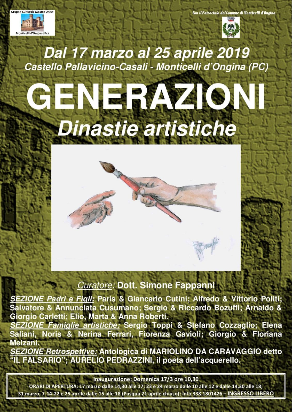 Nelle sale del castello Pallavicino-Casali di Monticelli d'Ongina (PC) si terrà dal 17 marzo al 25 aprile 2019 la mostra "Generazioni artistiche" dove nella sezione "padri e figli" il maestro Riccardo Bozuffi presenterà, oltre alle opere di sua esecuzione, quelle del padre Sergio Bozuffi (noto pittore di quadri di carattere fiammingo). Curatore della mostra il dott. Fappanni.